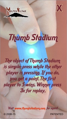 PATENTED. All Patents, Trademarks, and Copyrights are the exclusive property of ThumbStadium.com, a subsidiary of Molten Voltage. Licensing opportunities are available. Contact us at info@ThumbStadium.com |